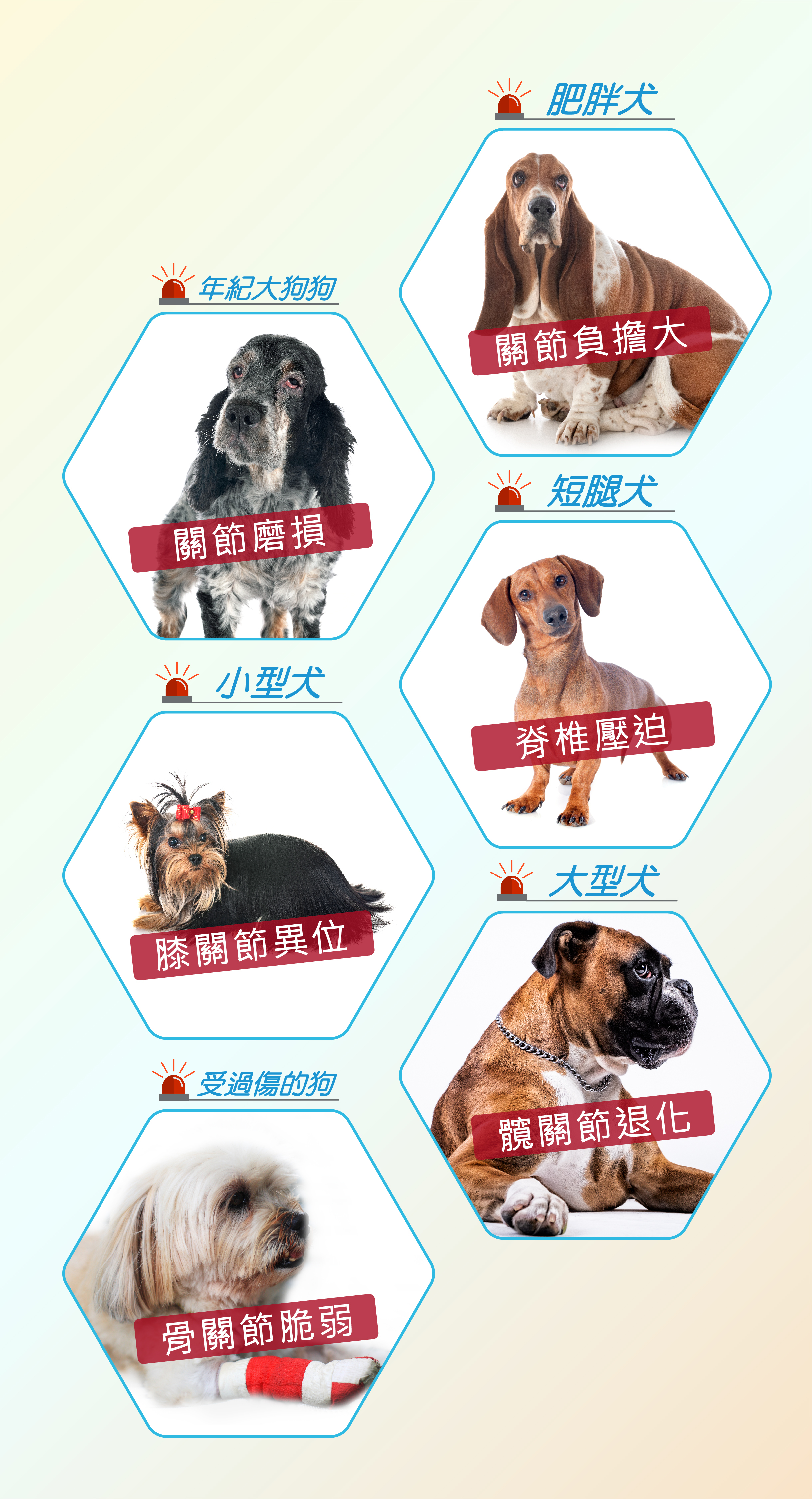 大部分的狗狗邁入老年,都會遇到關節老化的問題,所以每一隻狗狗都存在關節疾病風險
