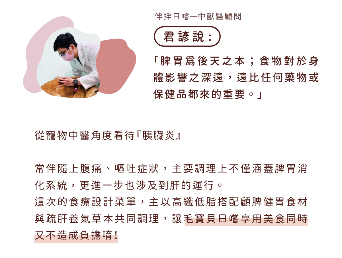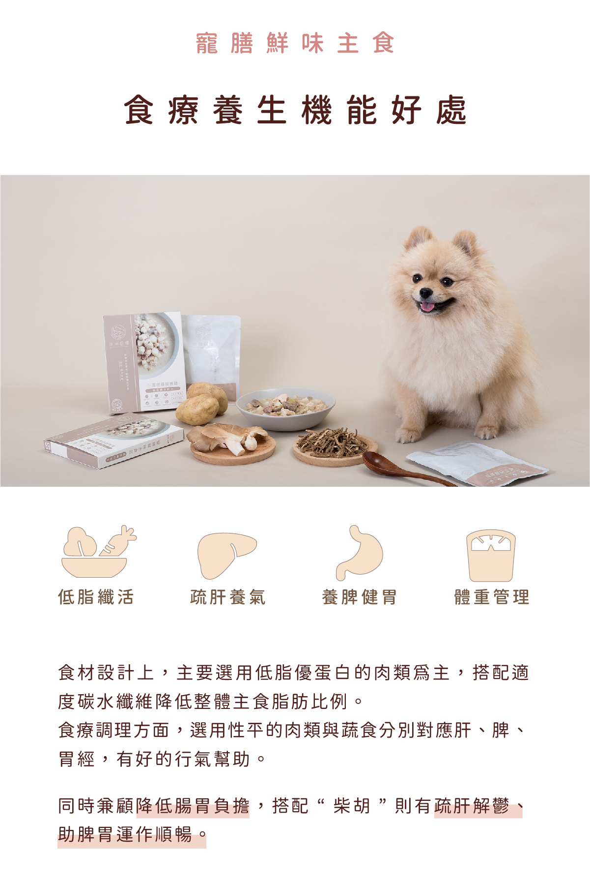3.寵膳鮮味主食概念為【食療養生】,目的是藉由配方鮮食作為日常調理與保健,而並非"治療"功效,如家中毛孩有任何特殊狀況應先協尋專業獸醫。